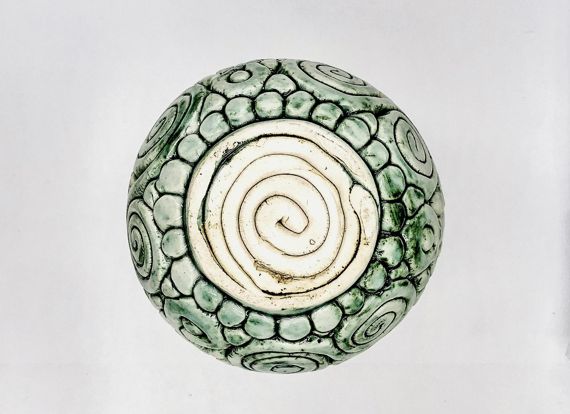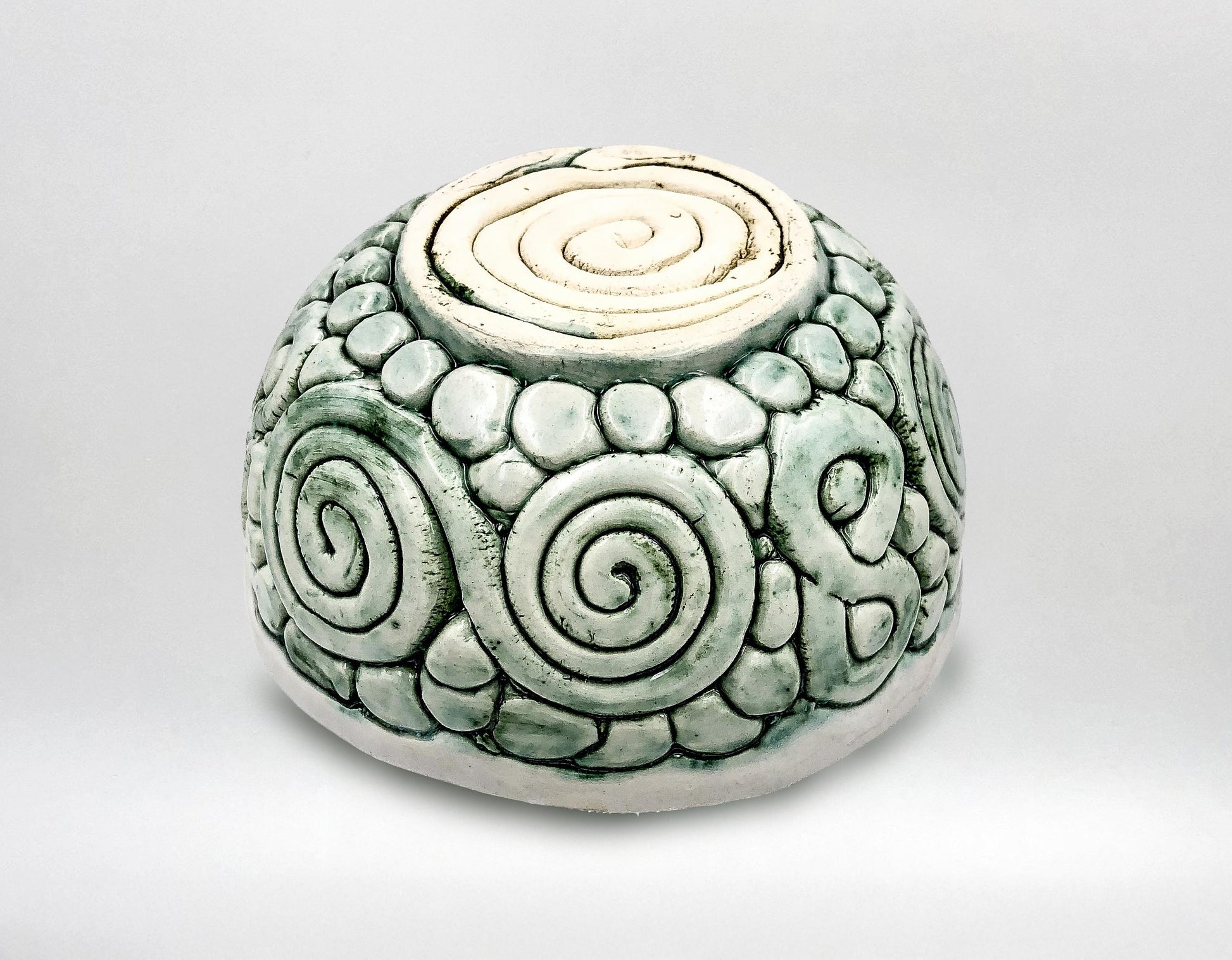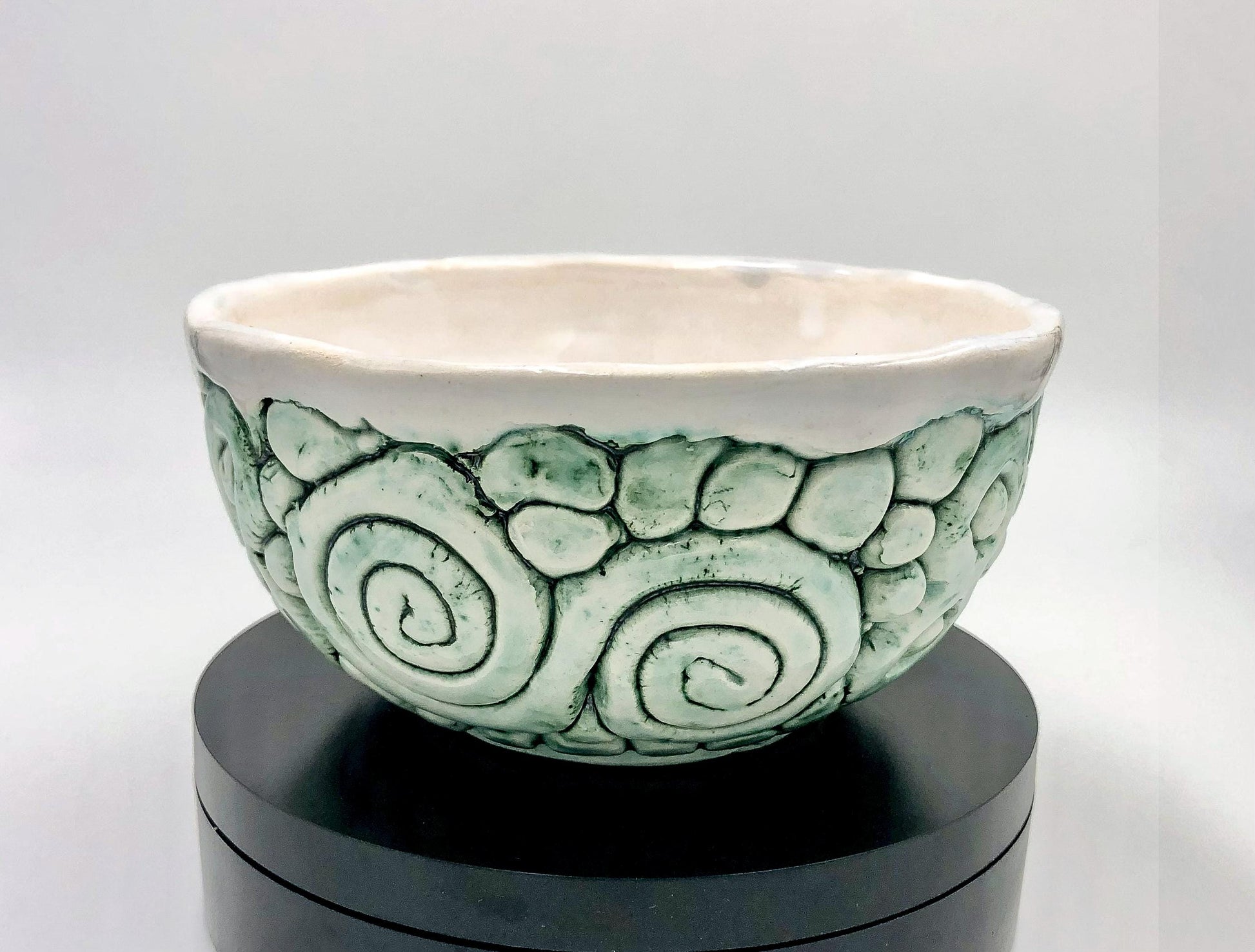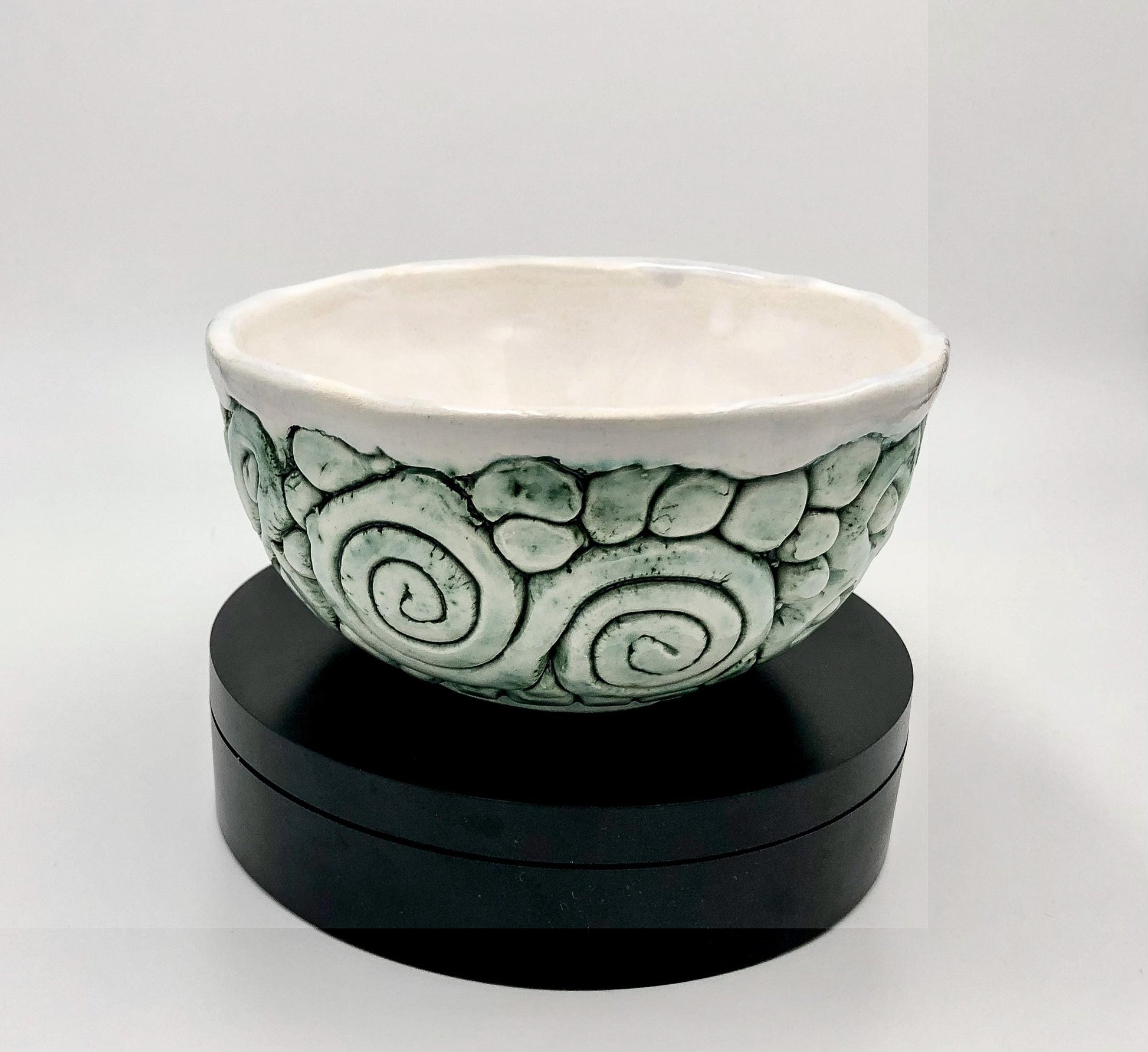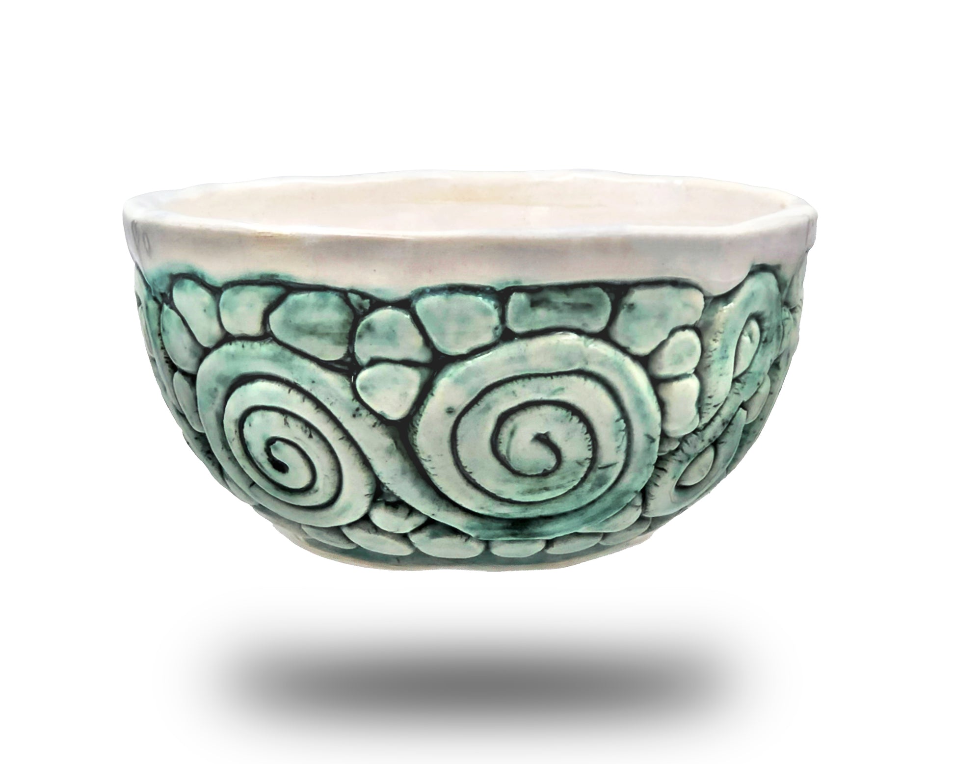 Cuenco de cerámica esmaltado hecho a mano con motivos verdes