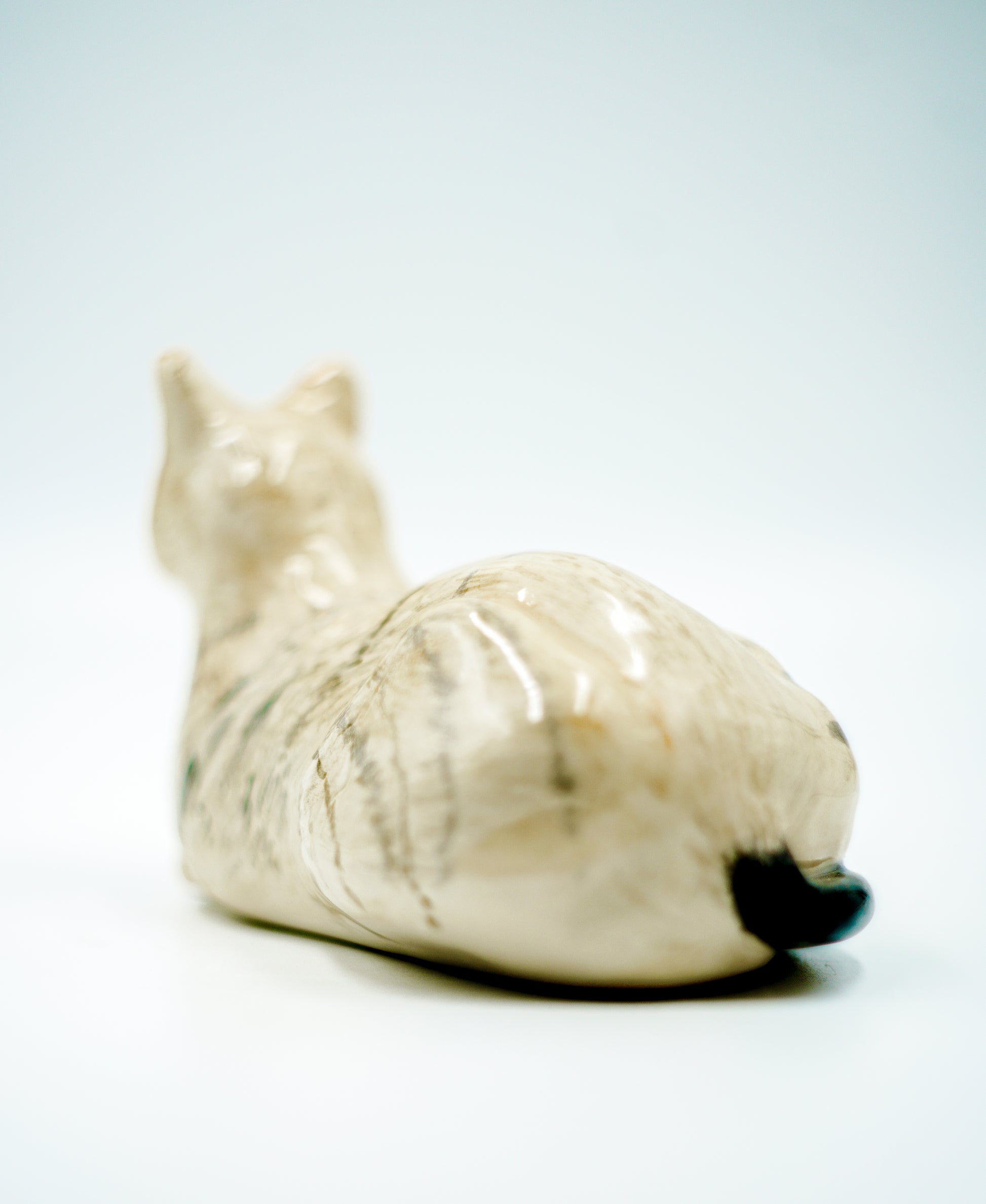 Figura de cerámica hecha a mano – Gato rayado sentado observando