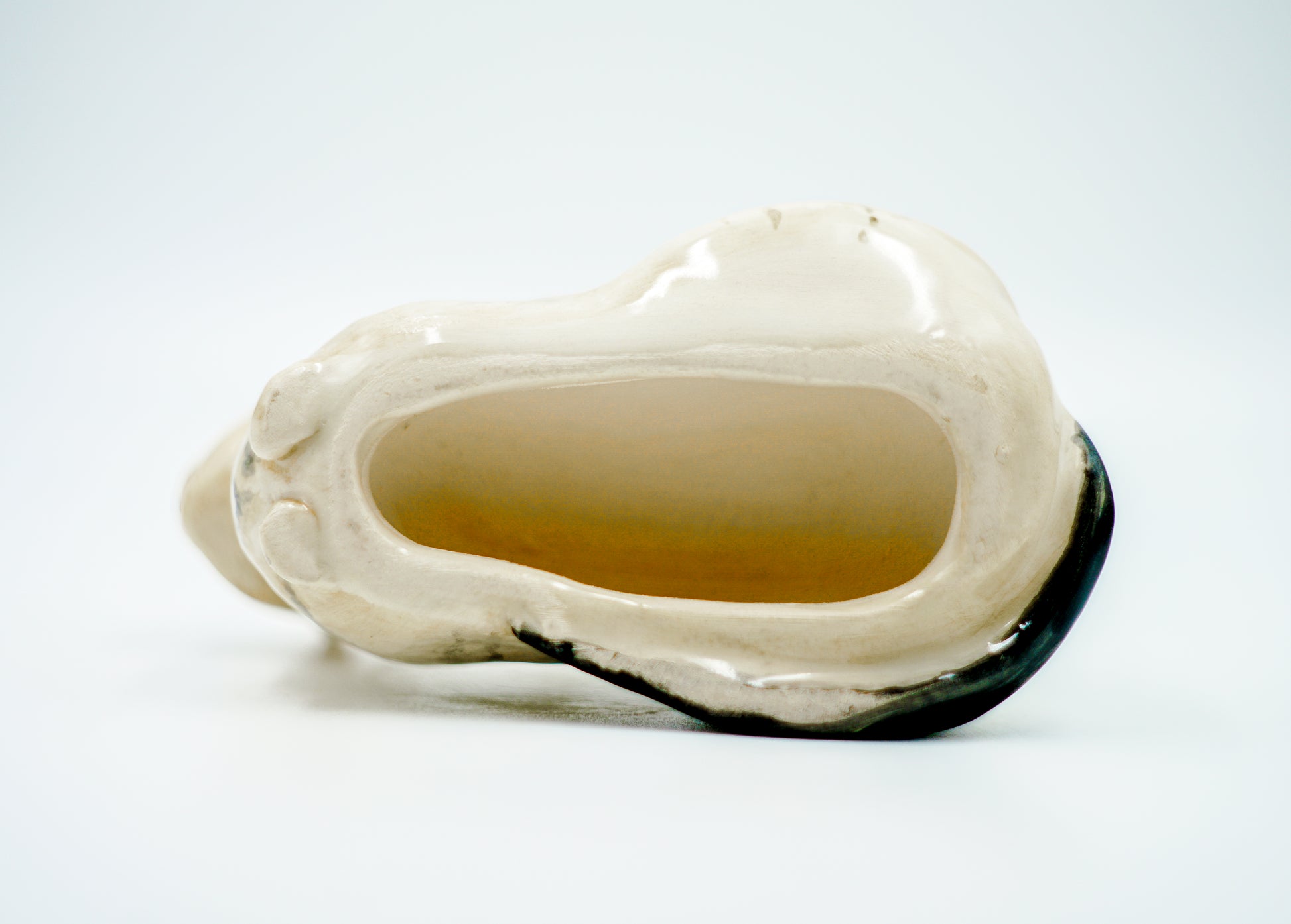 Figura de gato sentado en cerámica, modelada y esmaltada a mano. El felino tiene un acabado rayado con tonos blanco, amarillo ocre y ocre oscuro en la cabeza. Su postura refleja atención y curiosidad, con el cuerpo erguido y la mirada fija. Mide 8 x 5 x 5 cm. Es ideal como objeto decorativo, pieza coleccionable o regalo para quienes aprecian los gatos y la artesanía.